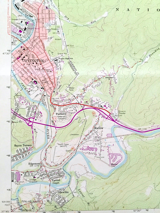 Antique Covington, Virginia 1962 US Geological Survey Topographic Map – County, George Washington & Jefferson National Forest, Low Moor, VA