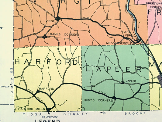Antique Cortland County, New York 1941 Historical Atlas Map – Cortlandville, Homer, McGraw, Scott, Preble, Marathon, Harford, Texas Valley