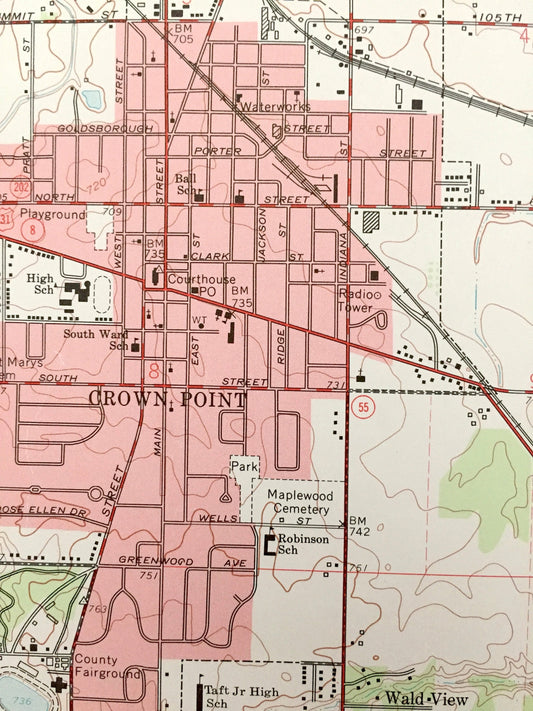 Antique Crown Point, Indiana 1962 US Geological Survey Topographic Map – Ross, Center, Winfield, Merrillville, Ainsworth, Lake County