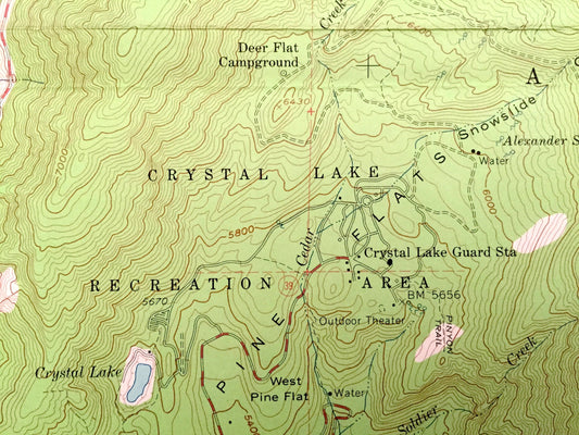 Antique Crystal Lake, California 1958 US Geological Survey Topographic Map – Los Angeles County, National Forest, South Mt. Hawkins, CA