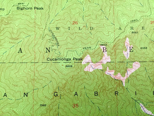 Antique Cucamonga Peak, California 1953 US Geological Survey Topographic Map –San Bernardino County, Cucamonga,Alta Loma, Grapeland,Etiwanda