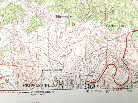 Antique Cripple Creek North, Colorado 1951 US Geological Survey Topographic Map – Black Mountain, Pike National Forest, Teller County