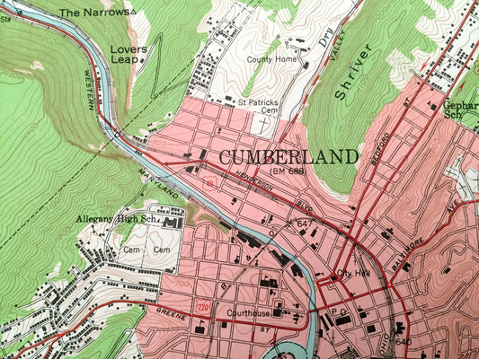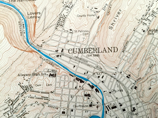 Antique Cumberland, Maryland 1949 US Geological Survey Topographic Map – Allegany County, Pennsylvania, West Virginia, Ridgeley Ellerslie MD