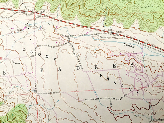 Antique Cuddy Valley, California 1943 US Geological Survey Topographic Map – Kern, Ventura County, Los Padres National Forest, Mt Pinos, CA
