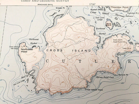 Antique Cross Island, Maine 1950 US Geological Survey Topographic Map – Washington County, Machiasport, Cutler, Gulf of Maine, ME