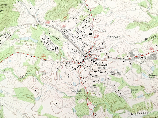 Antique Crozet, Virginia 1973 US Geological Survey Topographic Map – Albemarle County, White Hall, Midway, Yancey Mills, Brownsville, VA