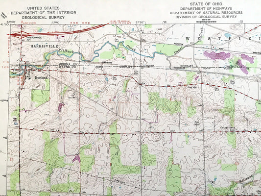 Antique Creston, Ohio 1961 US Geological Survey Topographic Map — Medina, Wayne County, Harrisville, Westfield, Congress, Canaan, Wayne, OH