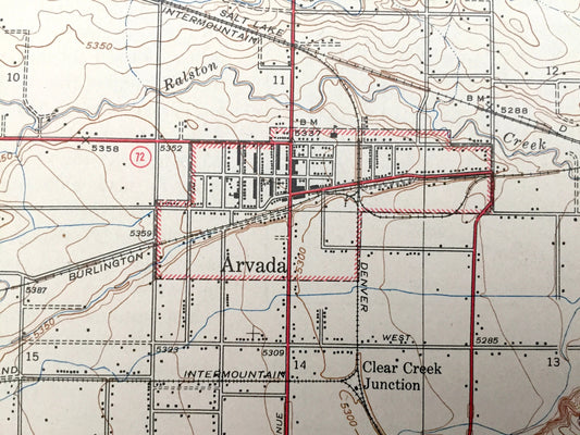 Antique Denver, Colorado 1944 US Geological Survey Topographic Map – Wheat Ridge, Arvada, Mountainview, Westminster, Edgewater, Standley, CO