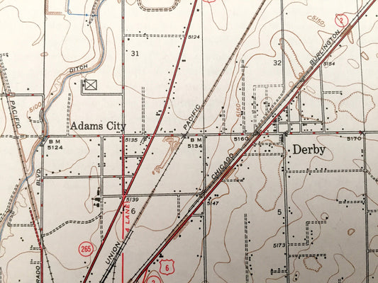 Antique Denver, Colorado 1947 US Geological Survey Topographic Map – Derby, Irondale, Dupont, Welby, South Platte River, Adams County, CO