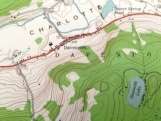 Antique Davenport, New York 1943 US Geological Survey Topographic Map – Delaware County, Fergusonville, Harpersfield, Hoseaville Meredith NY