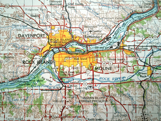 Antique Davenport, Iowa 1962 US Geological Survey Topographic Map – Cedar Rapids, Clinton, Bettendorf, Wapello, Muscatine, DeWitt, Tipton