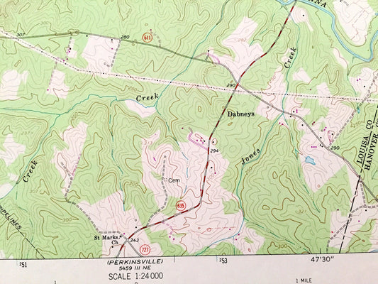 Antique Dabneys, Virginia 1968 US Geological Survey Topographic Map – Louisa, Hanover, Goochland County, Jackson, South Anna River, VA