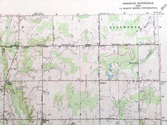 Antique Damascus, Ohio 1966 US Geological Survey Topographic Map — Mahoning, Columbiana County, Berlin, Ellsworth, Smith, Goshen, Butler, OH