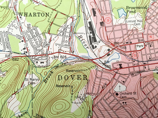 Antique Dover, New Jersey 1954 US Geological Survey Topographic Map – Morris, Sussex County, Jefferson, Rockaway, Roxbury, Denville, Wharton
