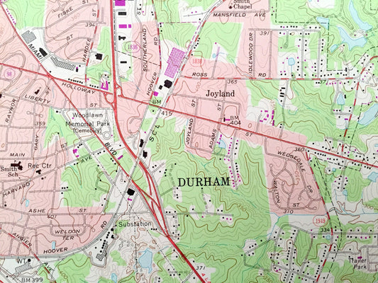 Antique Durham, North Carolina 1973 US Geological Survey Topographic Map – Wake County, Joyland, Hayes, Oak Grove, Brassfield, Bethesda, NC