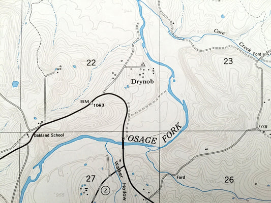Antique Drynob, Missouri 1954 US Geological Survey Topographic Map – Pulaski, Laclede County, Harrell Ford, Mark Twain National Forest, MO