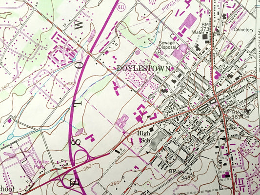 Antique Doylestown, Pennsylvania 1953 US Geological Survey Topographic Map – Montgomery, Bucks County, Hilltown, Montgomery, Warrington, PA