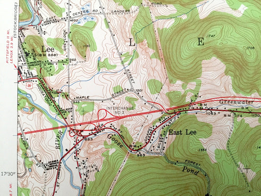 Antique East Lee, Massachusetts 1945 US Geological Survey Topographic Map – Berkshire County, Washington, Lenox, Tyringham, Becket, Otis, MA
