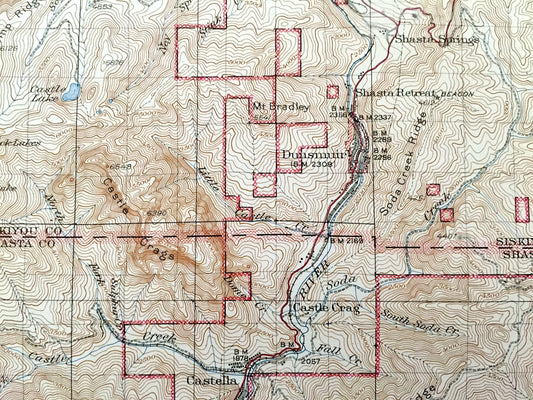Antique Dunsmuir, California 1935 US Geological Survey Topographic Map – Mt Shasta, Siskiyou County, Trinity Range, Weed, McCloud, Cascade