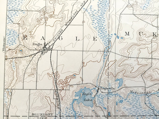 Antique Eagle, Wisconsin 1906 US Geological Survey Topographic Map – Ottawa, Genesee, Waukesha, Mukwonago, Vernon, Troy Waterford Hilburn WI