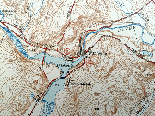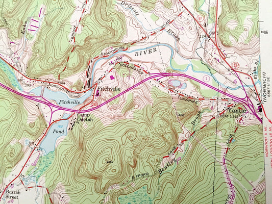 Antique Fitchville, Connecticut 1943 US Geological Survey Topographic Map – Colchester, Lebanon, Franklin, Bozrah, Salem, Yantic River, CT