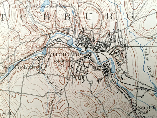 Antique Fitchburg, Massachusetts 1893 US Geological Survey Topographic Map – Ashby, Leominster & Rindge, New Ipswich, New Hampshire, ME NH