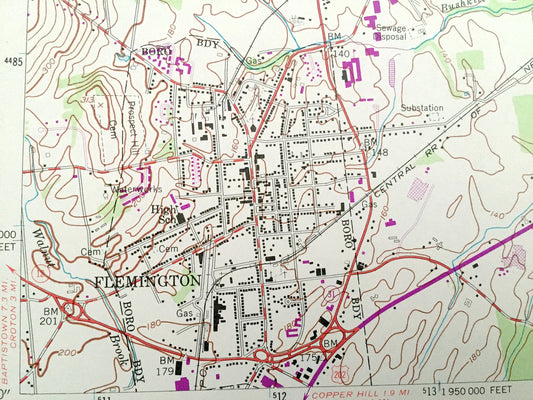 Antique Flemington, New Jersey 1954 US Geological Survey Topographic Map – Hunterdon, Somerset County, Clinton, Readington, Raritan, NJ