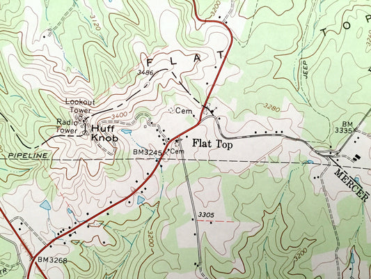 Antique Flat Top, West Virginia 1968 US Geological Survey Topographic Map – Raliegh, Summers, Mercer County, Shady Spring, Jumping Branch WV