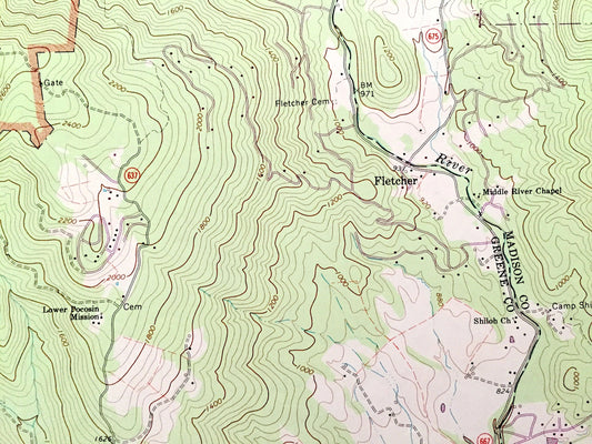 Antique Fletcher, Virginia 1965 US Geological Survey Topographic Map – Page, Greene, Madison County Shenandoah National Park Blue Ridge, VA
