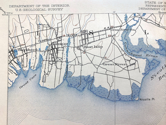 Antique Fire Island, New York 1903 US Geological Survey Topographic Map – Long Island, Babylon, Bay Shore, Islip, Sayville Suffolk County NY