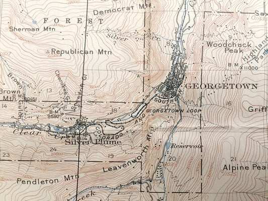 Antique Georgetown, Colorado 1905 US Geological Survey Topographic Map – Silver Plume Idaho Springs Freeland Arapaho Pike National Forest CO