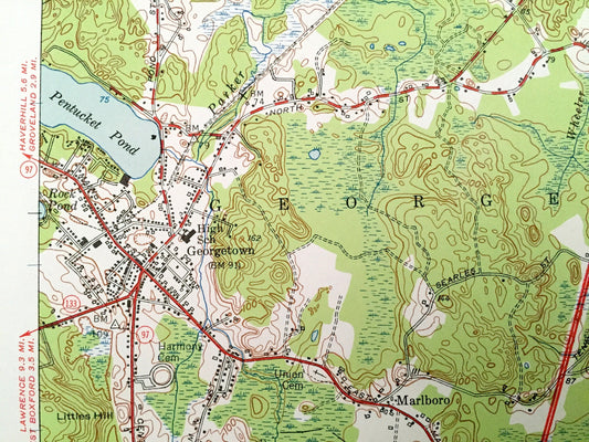 Antique Georgetown, Massachusetts 1953 US Geological Survey Topographic Map – Essex County, Groveland, Newbury, Rowley, Ipswich, Boxford, MA