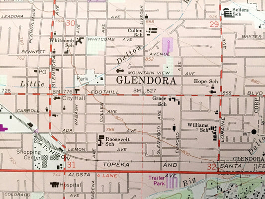 Antique Glendora, California 1966 US Geological Survey Topographic Map – Los Angeles, La Verne, San Dimas Tanbark Flats San Gabriel River NY