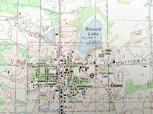 Antique Grant, Michigan 1985 US Geological Survey Topographic Map – Ashland, Casnovia, Tyrone, Bailey, Half Moon Lake Blanch Moore County MI