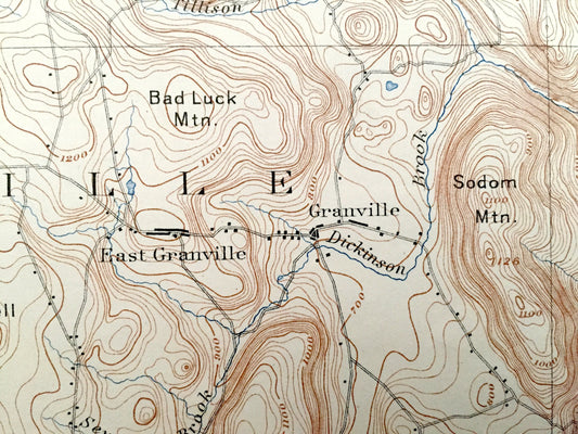 Antique Granville, Massachusetts 1895 US Geological Survey Topographic Map – Montgomery, Blanford, Westfield & Hartland, Granby, Connecticut