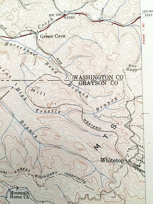 Antique Grayson, Tennessee 1934 US Geological Survey Topographic Map – North Carolina, Virginia, Washington, Johnson, Ashe County, Whitetop