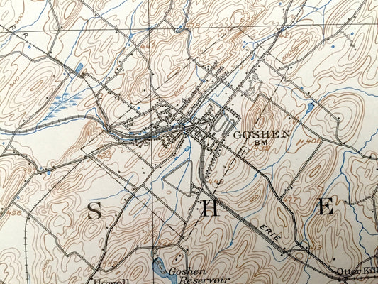 Antique Goshen, New York 1908 US Geological Survey Topographic Map – Orange County, Middletown, Florida, Warwick Wawayanda Bellvale Kipps NY