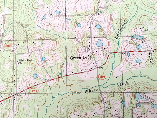 Antique Green Level, North Carolina 1993 US Geological Survey Topographic Map – Durham, Wake, Chatham County, B Everrett Jordan Lake, NC