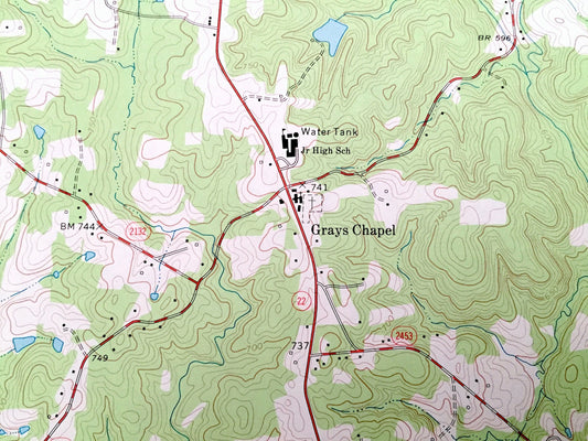 Antique Grays Chapel, North Carolina 1974 US Geological Survey Topographic Map – Randolph County, Lineberry, Melanchthon, Millboro, NC
