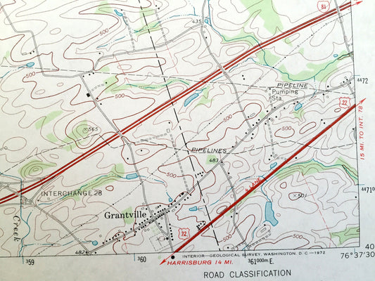 Antique Grantville, Pennsylvania 1969 US Geological Survey Topographic Map – Dauphin, Lebanon County, Jefferson, Rush, Cold Spring, PA