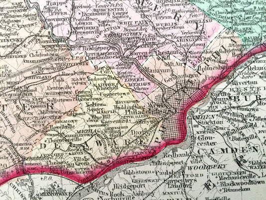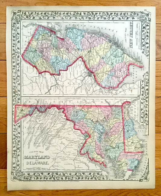 Antique 1874 Maryland, New Jersey & Delaware State Map by S.A. Mitchell – Baltimore, Washington DC, Wilmington, Pennsylvania, Cape May NJ MD