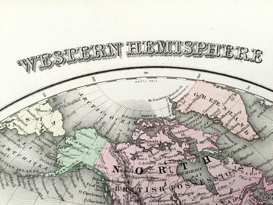 Antique 1874 Western Hemisphere Map from O.W. Gray's Atlas of United States of America and World; Stedman, Brown & Lyon – USA, Globe, Earth