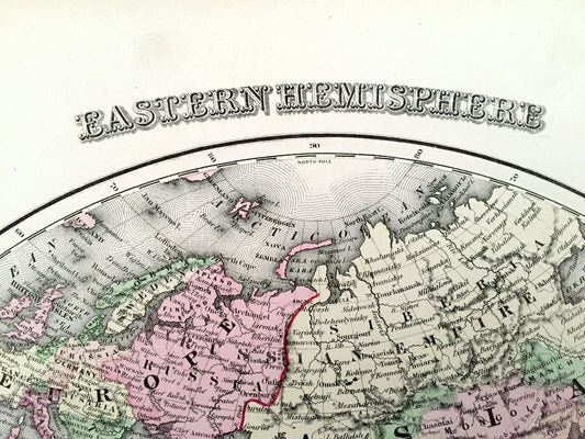 Antique 1874 Eastern Hemisphere Map from O.W. Gray's Atlas of United States of America and World; Stedman, Brown & Lyon – Asia, Africa Earth