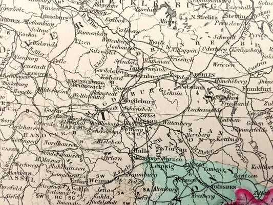 Antique 1874 British Isles / Germany and Austria Map from O.W. Gray's Atlas of United States of America; Stedman, Brown & Lyon – Switzerland