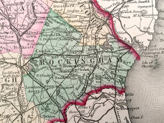 Antique 1874 New Hampshire / Vermont Map from O.W. Gray's Atlas of United States of America; Stedman, Brown & Lyon – White Green Mountains