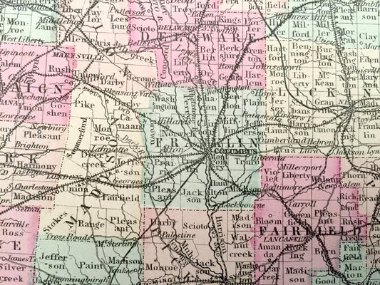 Antique 1874 Ohio / Kentucky and Tennessee State Map from O.W. Gray's Atlas of United States of America; Stedman, Brown & Lyon – Louisville