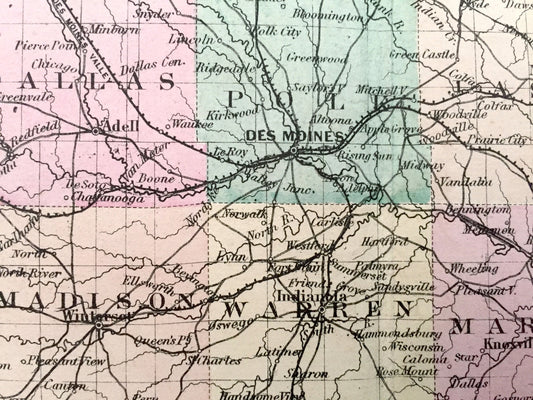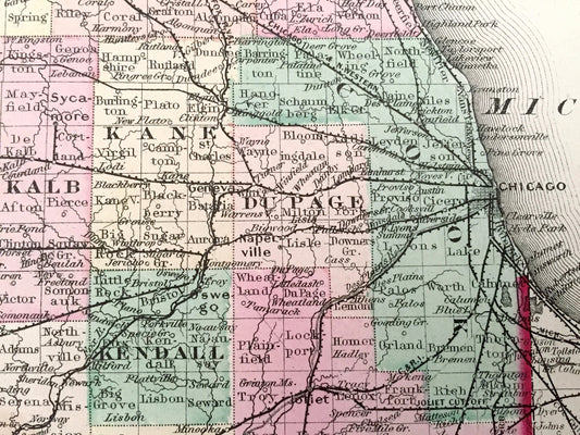Antique 1874 Iowa / Chicago and Michigan State Map from O.W. Gray's Atlas of United States of America; Stedman, Brown & Lyon – Des Moines
