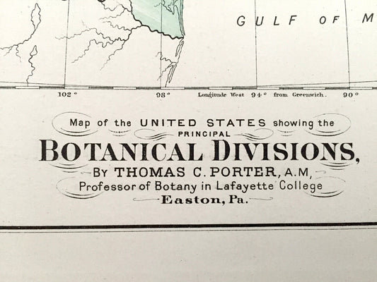 Antique 1874 Botanical Divisions Map of the USA from O.W. Gray's Atlas of United States of America; Stedman, Brown & Lyon – Thomas C Porter