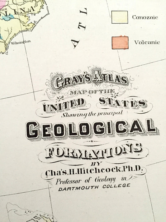 Antique 1874 Geological Formations Map of the United States from O.W. Gray's Atlas of the United States; Stedman, Brown & Lyon — USA America
