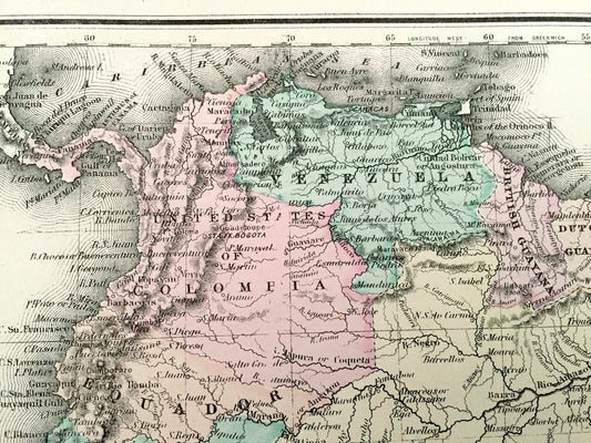 Antique 1874 West Indies and Central America / Mexico Map from OW Gray's Atlas of United States of America; Stedman, Brown, Lyon – Caribbean